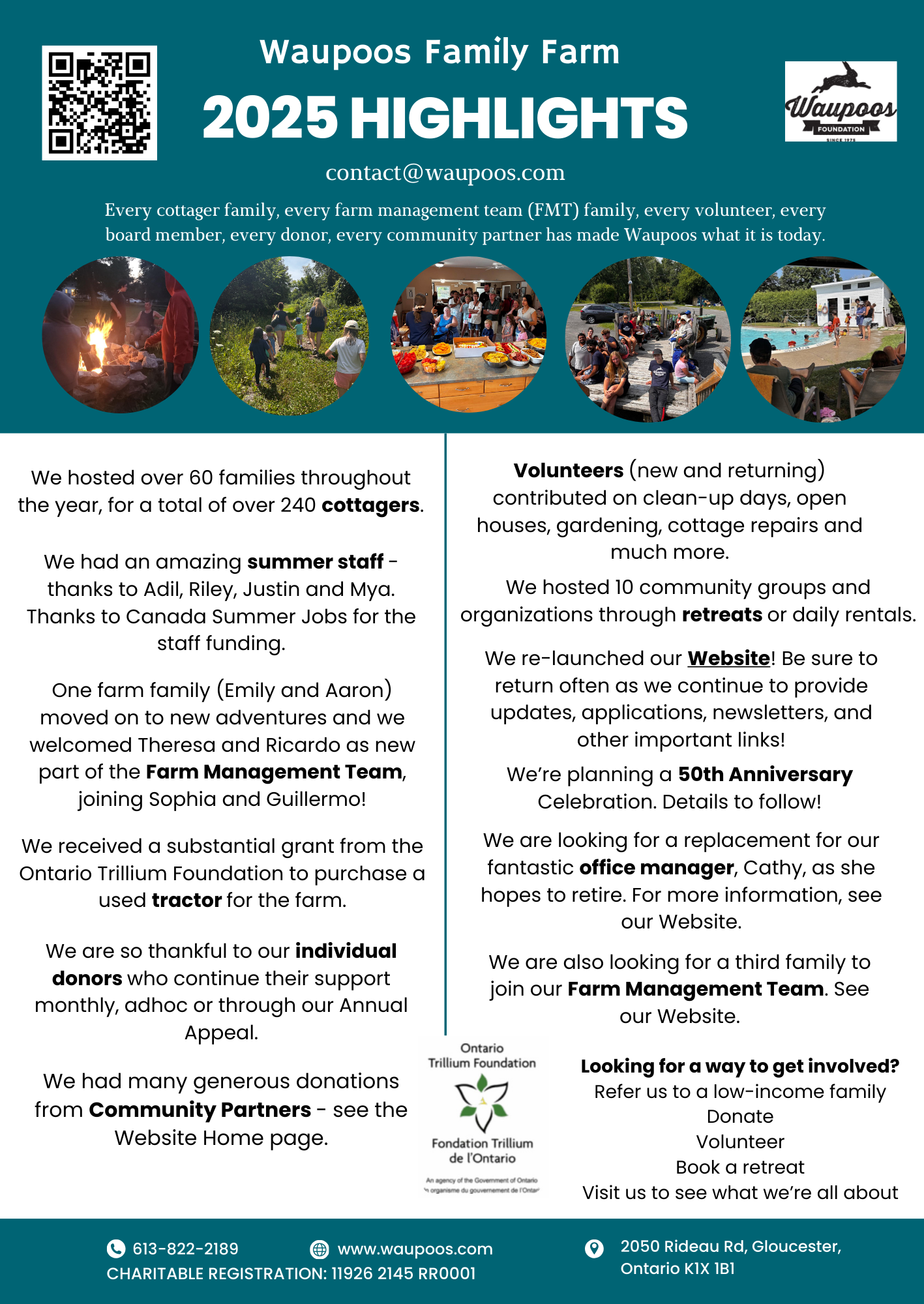 Thanks to everyone who attended the Waupoos General Meeting on Saturday, September 13th. Welcome to new Board and Committee members! Please have a look at the Waupoos 2025 Highlights!