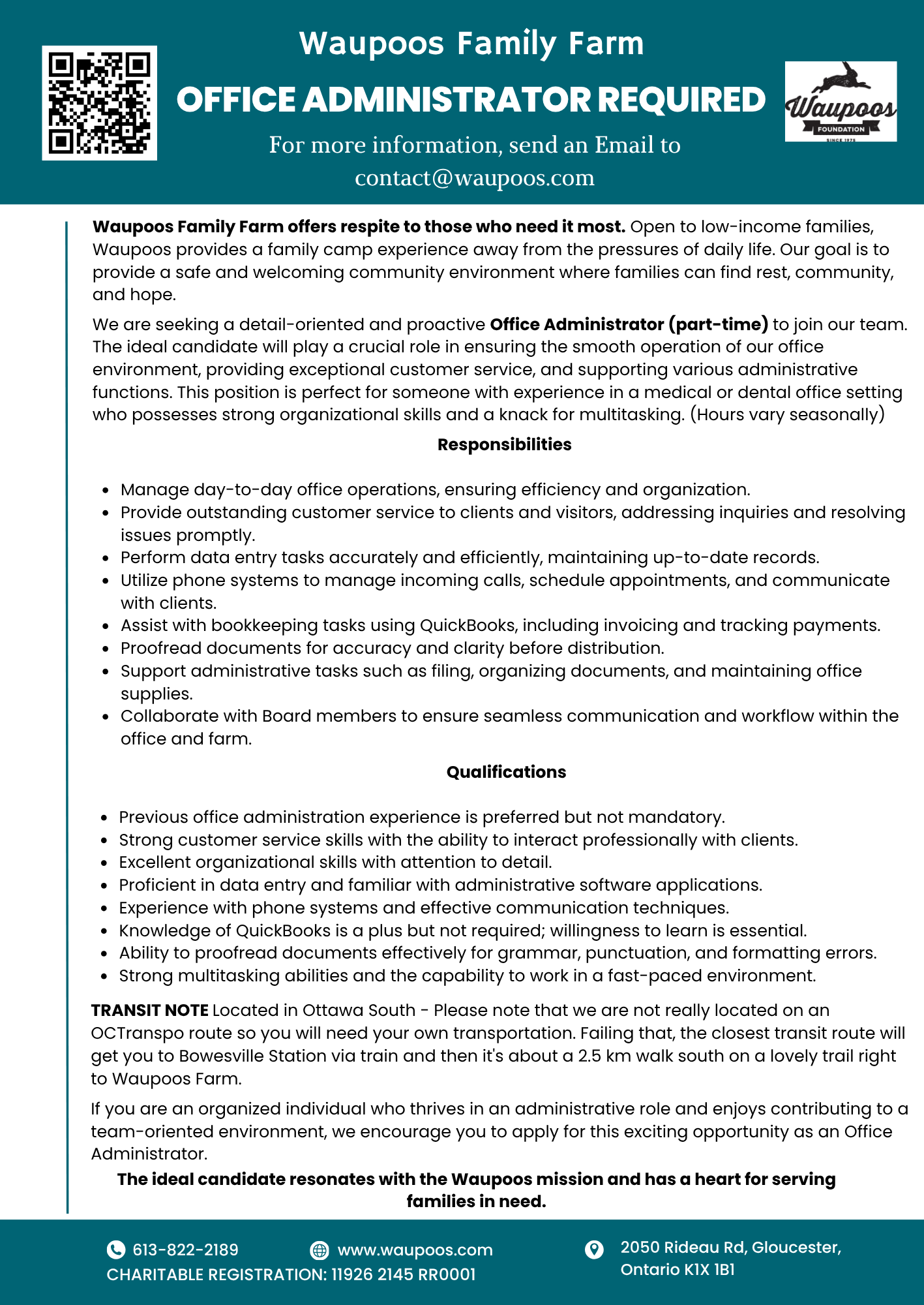 Apply by November 14! Looking for a rewarding and challenging part-time employment opportunity? Then Waupoos wants to hear from you regarding our Administrator position! Click here for more information.